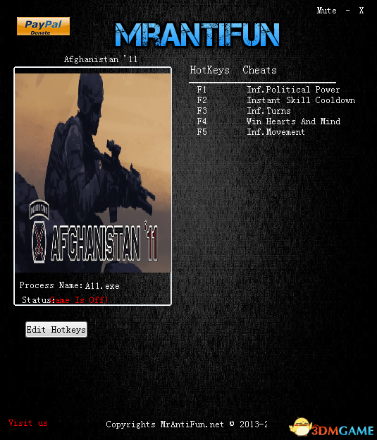 阿富汗11 v1.0.2五项修改器[MrAntiFun];由“MrAntiFun”制作,来自外网多项修改,需要的玩家有爱自取。