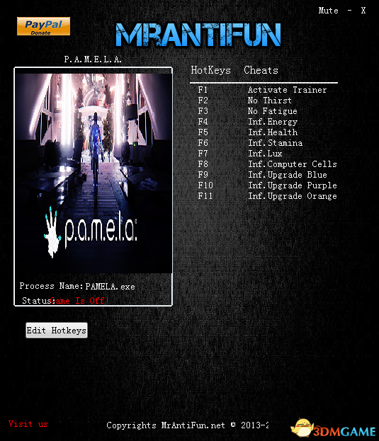 P.A.M.E.L.A. v0.1.3.8十项修改器[MrAntiFun];由“MrAntiFun”制作,来自外网多项修改,需要的玩家有爱自取。