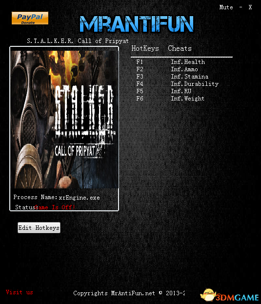 潜行者:普里皮亚季的召唤 v1.6.02六项修改器[MrAntiFun];由“MrAntiFun”制作,来自外网多项修改,需要的玩家有爱自取。