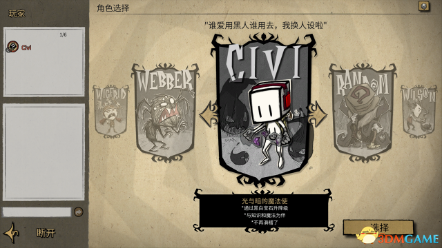 饥荒:联机版 Civi人物MOD,由Civi制作。特点是吃黑宝石升级、吃白宝石降、可以使用书籍的一个人物,需要的玩家可以下载来试试看。 .