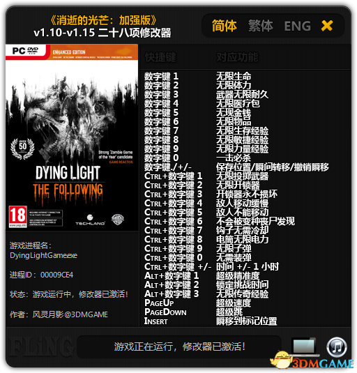 3. “超级速度”,“超级跳”,“瞬移到标记位置”建议和无限生命一起使用,否则可能会受到跌落伤害和碰撞伤害。