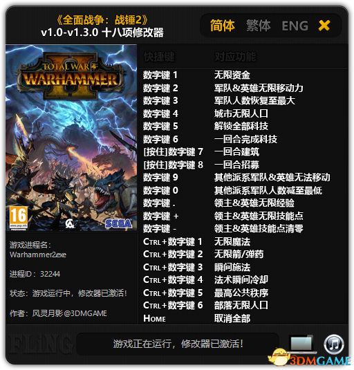 《全面战争:战锤2(Total War: Warhammer II)》修改器大全!为广大喜欢受苦的玩家提供全面强大的多功能修改器,包含3DM风灵月影,GOG等多种修改器,致力于给玩家一个良好的游戏环境,最佳的游戏体验。欢迎前来3DM《全面战争:战锤2》修改器大全下载!