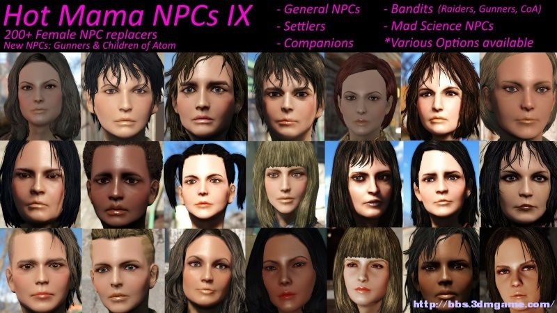 《辐射4》(Fallout 4)热辣NPCMOD[AerysTMD],把所有的跟漂亮扯不上关系的女性NPC变得非常好看,十分有趣的欢乐向MOD,如果能接受一个80岁声音的美女这样的设定的话,感兴趣的话,就来下载吧!