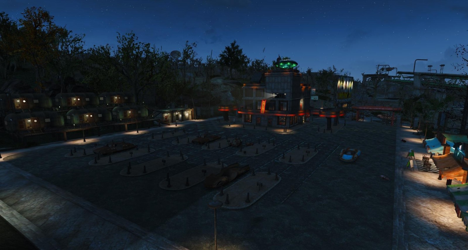 《辐射4》一款让你的星光休息站真的充满星光的mod,清除满地的骷髅与汽车残骸,一款相当不错的美化mod,重置了星光休息站的汽车停车场,感兴趣的话,就来下载吧!