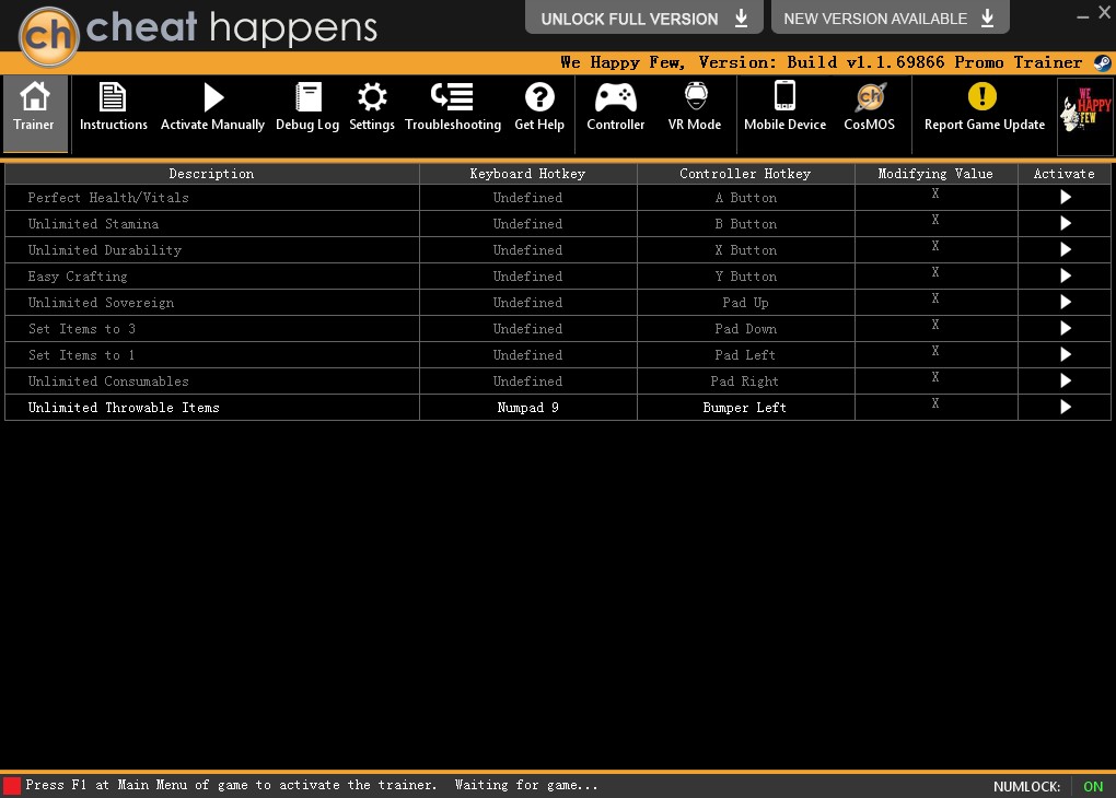 《少数幸运儿》(WE HAPPY FEW)v1.1.69866一项修改器CHEATHAPPENS版,给你的正式版带来强大的修改效果,无限耗材让你的游戏嫩度更加更加轻松,感兴趣的话,就来下载吧!