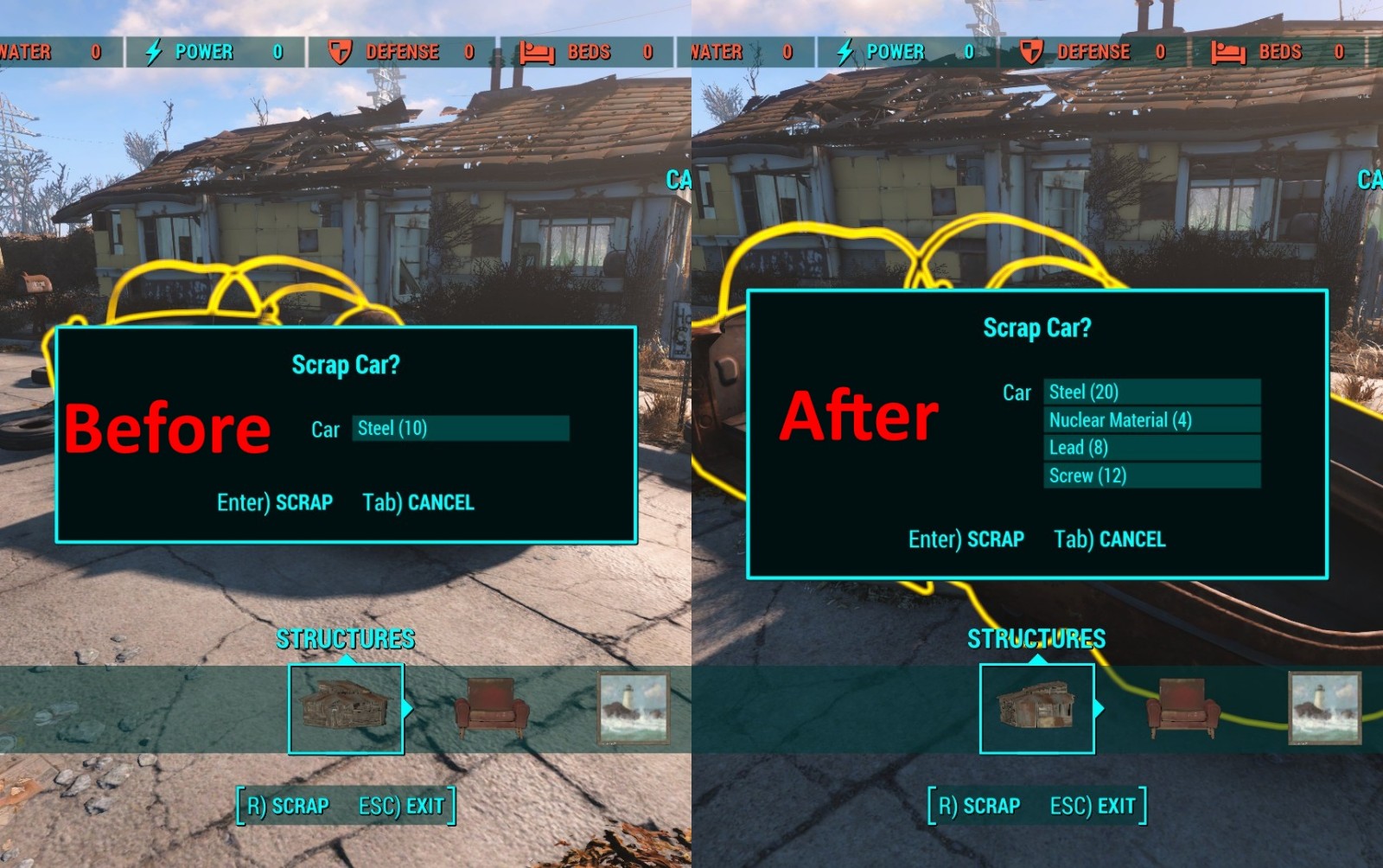 《辐射4》超级拆除mod,让你在拆除各种东西时能够获得更多的物资,从各种可拆除物品里获得更多的东西,不影响你能拆什么,欢迎前来下载。