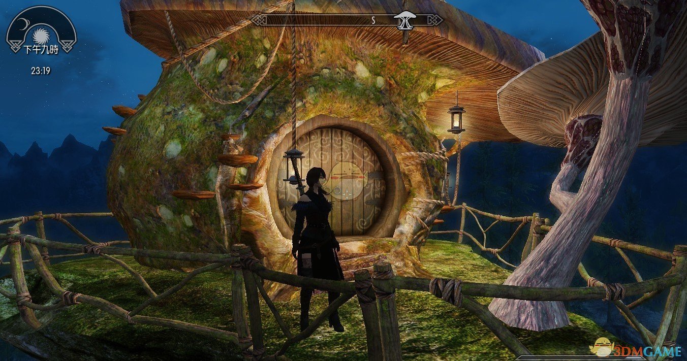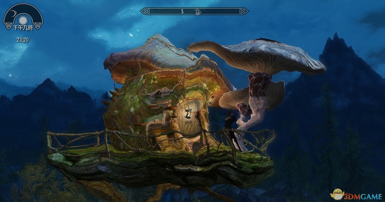 《上古卷轴5:天际》一个像是童话里出来的房子,在空中的蘑菇屋,看着就很卡通很温馨,里面带有附魔,补充水晶魔能,治疗疾病的工作台。在进入游戏收到一封给龙爪的信,做完任务就可以得到。