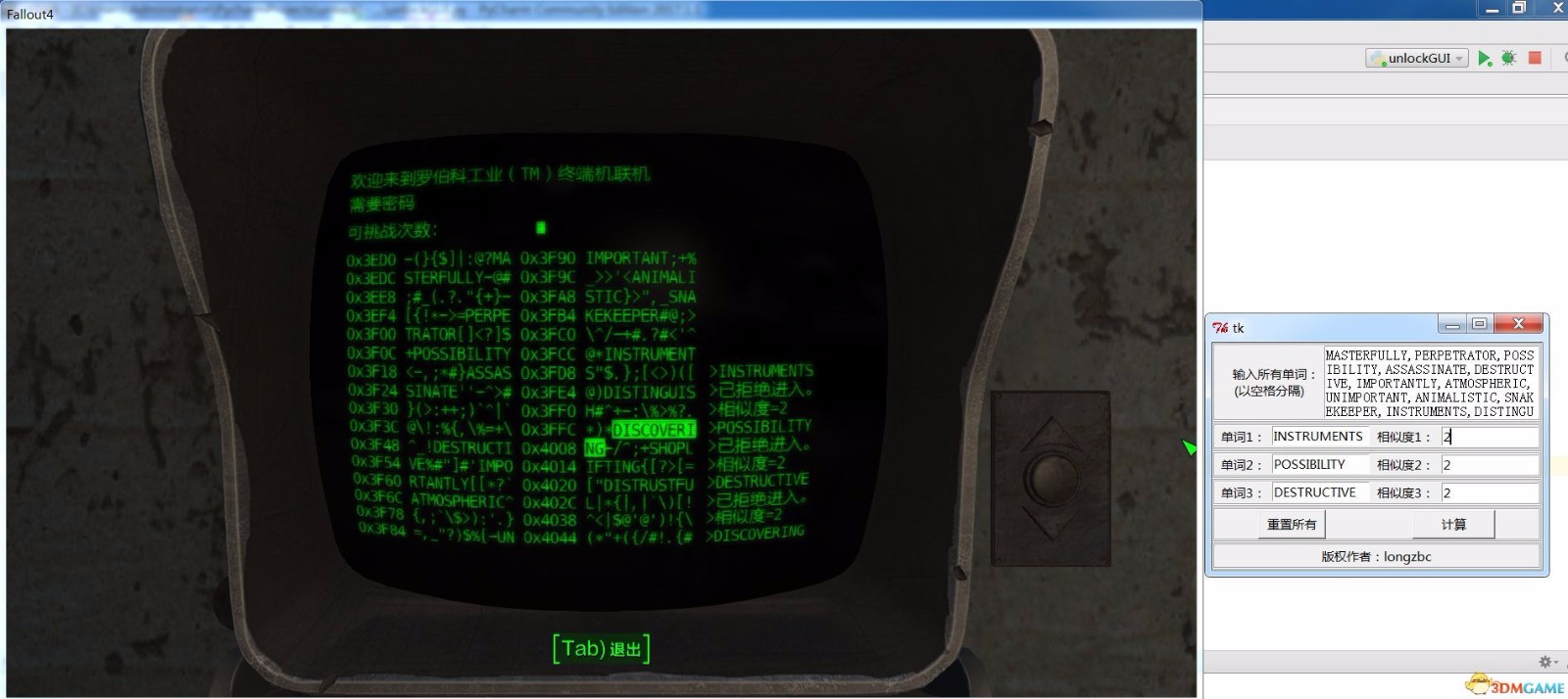 《辐射4》终端破解机mod,一款非常轻松简单的解密功能,只要随即点击三个单词就能直解破解的终端破解机,非常适合新手使用,感兴趣的话,就来下载吧!