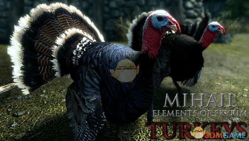 《上古卷轴5:天际》在游戏中添加了非常多的火鸡,遍布全省的斯基里姆农场,都是黑蓝相间的。在裂谷的森林里,你会发现一小群棕色的野火鸡。