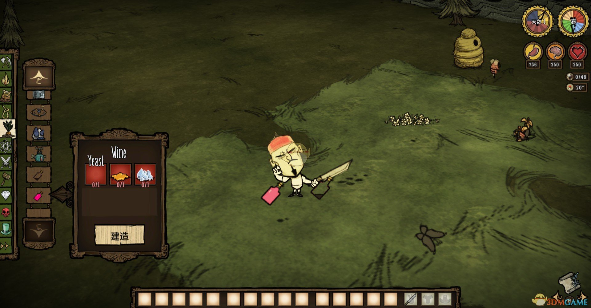 《饥荒》YIYAN自制角色MOD。一个简单自制角色750的饥饿,250的血量,250的精神,2倍的饥饿速度,1.5倍攻击力。带把刀,可以在农场栏造酒,可以在武器栏造手雷。喜欢这个角色就来3DM下载吧。