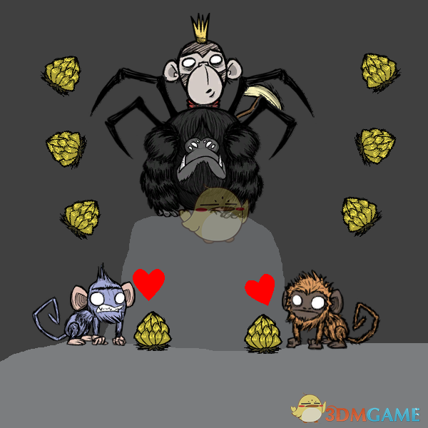 你有没有因为猴子角色威尔伯只能与一种猴子——海难的猿猴成为朋友而感到恼火。这个MOD允许威尔伯与普通的猴子和蜘蛛猴成为朋友。由于体型较大,威伯还可以骑蜘蛛猴。