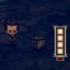 《饥荒》小冰箱MOD。小冰箱可以使暖石降温,所以你可以带着它在夏天出去浪,尤其是船难没有冰切的情况下。它需要齿轮补充能量,所以当你在家的时候,你最好把它关闭。小冰箱有一共4个格子。