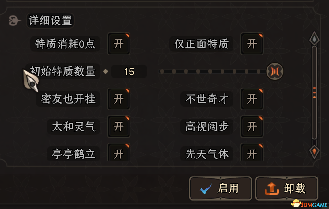 《太吾绘卷》捏人特质修改合集。一款很棒的捏人特质修改合集,里面包含了免费出生特质,仅正面特质,自定义数量,指定特殊特质等多种功能给玩家选择,喜欢的玩家不要错过。