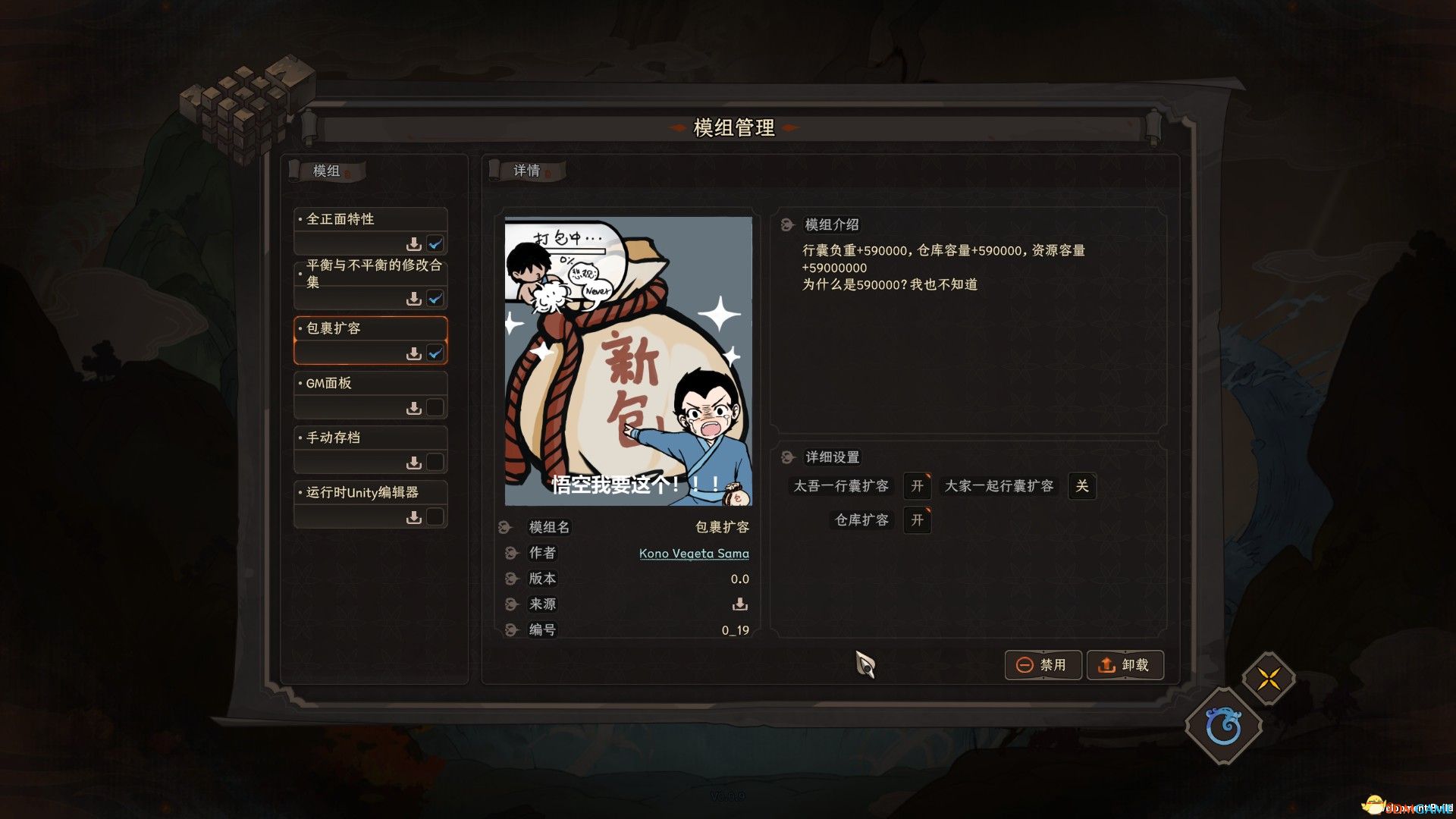 《太吾绘卷》超大背包MOD。一个很实用的扩容补丁,这个补丁的作者将游戏中的背包扩容了几十万倍,让玩家不用担心背包不够用了,有需要的玩家不要错过。