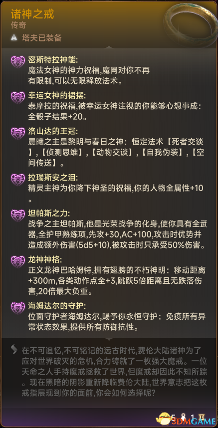 《博德之门3》诸神之戒MOD ,这款模组可以给你一个诸神之戒,详细效果见下图,是一款非常实用的武器MOD,感兴趣的小伙伴快来3DM下载吧