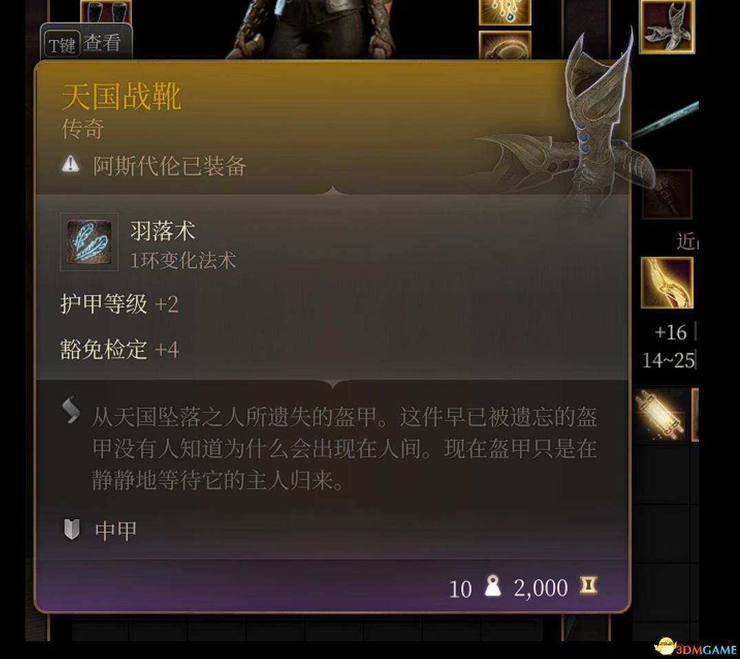 《博德之门3》天国盔甲MOD。正如其名。下载安装这款模组玩家可以获得一套天国盔甲套装,每个物品都有不同的功能及效果,具体效果见下图!是款非常不错的MOD。感兴趣的玩家快来3DM下载吧!