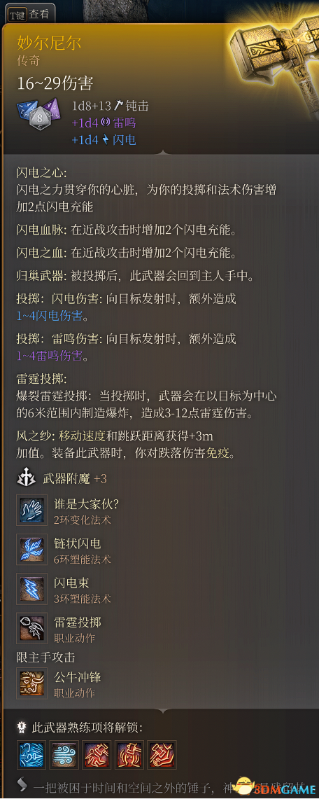 《博德之门3》将雷神锤添加到游戏当中MOD。正如其名。这款模组可以为玩家提供一把强力的武器雷神之锤-妙尔尼尔!具体效果见下图!是款非常不错的MOD。感兴趣的玩家快来3DM下载吧!