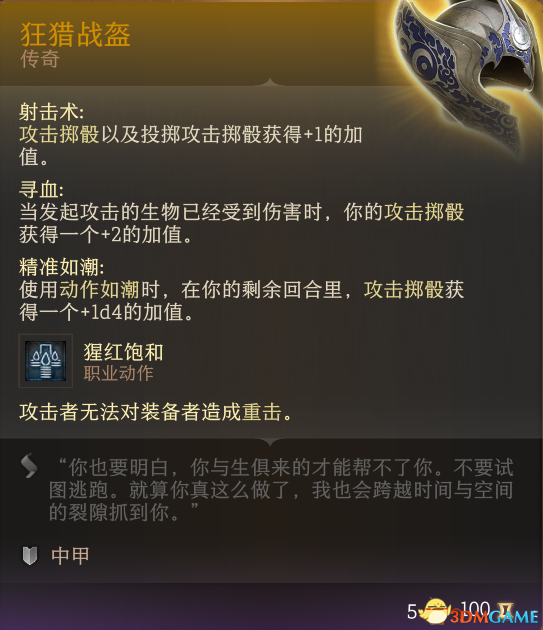 《博德之门3》狂猎套组MOD。正如其名。下载这款模组玩家可以获得一套狂猎套装,套装包含,项链,戒指,头盔手套衣服鞋子,吸血鬼战士重击弓,重击弓梆梆梆的快感真是谁用谁知道!具体效果见下图!是款非常不错的MOD。感兴趣的玩家快来3DM下载吧!