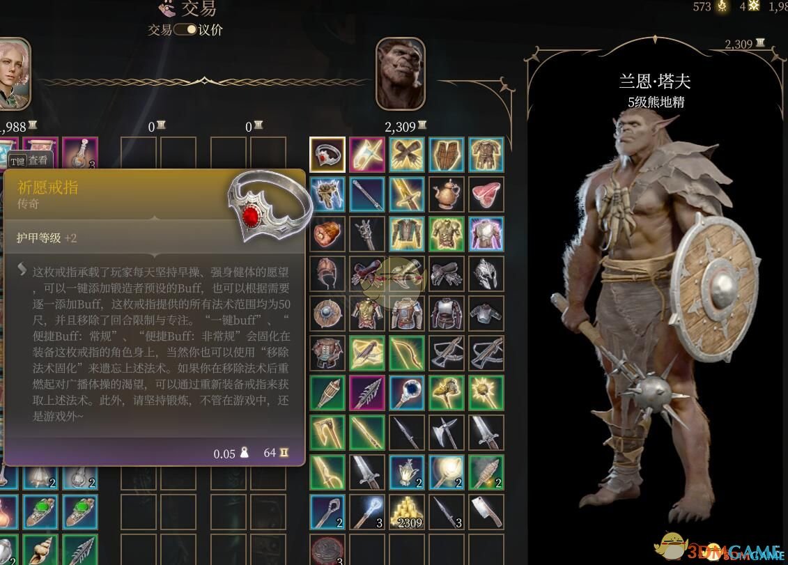 2.获得祈愿戒指:目前可以在第一章翠绿林地商人和第三章丹瑟隆飞斧商人直接购买。或者使用CE/小斧头等工具直接刷出,UUID:3d7478de-f1b6-4d01-90e9-9d3e53a33c77