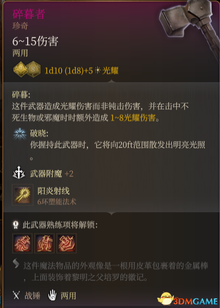 《博德之门3》纷争物品包MOD。这款模组包含就是个普通的增加装备的mod,包含自设的几件装备,更多来自于dnd 5e规则书里的装备,部分进行了魔改。部分装备的强度很高,喜欢平衡的朋友慎入!具体效果见下图!是款非常不错的MOD。感兴趣的玩家快来3DM下载吧!