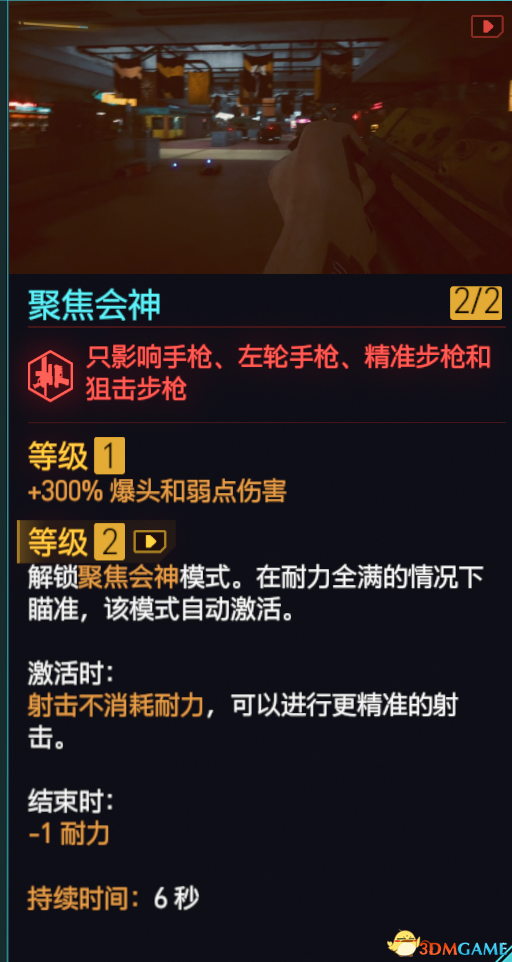 《赛博朋克2077》镇定天赋树-聚精会神模式增强MOD。这款模组原版增加了50%爆头和弱点攻击的伤害,把瞄准时的时间减速从30%加强到了75%,聚精会神模式的持续时间改为了7秒。耐力消耗的ui没改(加强版增加了300%的爆头和弱点攻击的伤害倍数,把瞄准的时间减速改到了50%,持续时间6秒,耐力消耗的ui改成了1,结束时消耗1点耐力。ini文本也进行了汉化备注,如果需要修改,直接记事本打开ini文本就可以修改了)。是一款非常实用的模组,感兴趣的玩家可以到3DM下载。