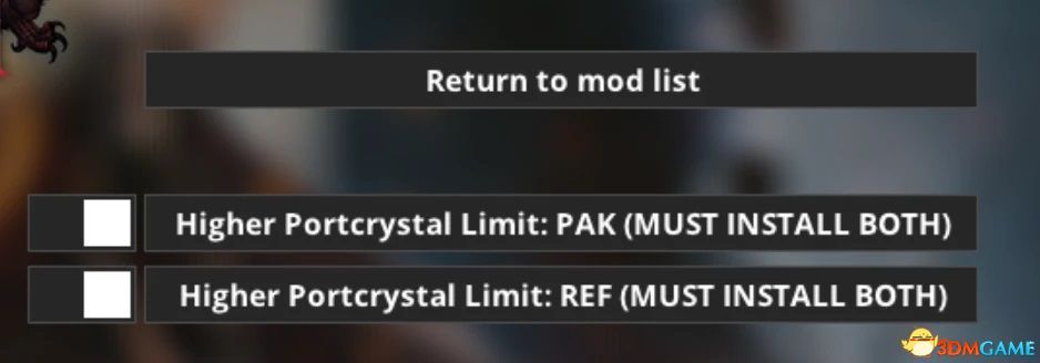 5、在Fluffy Mod Manager里的Higher Portcrystal Limit内勾选Higher Portcrystal Limit- PAK (MUST INSTALL BOTH)以及Higher Portcrystal Limit- REF (MUST INSTALL BOTH)