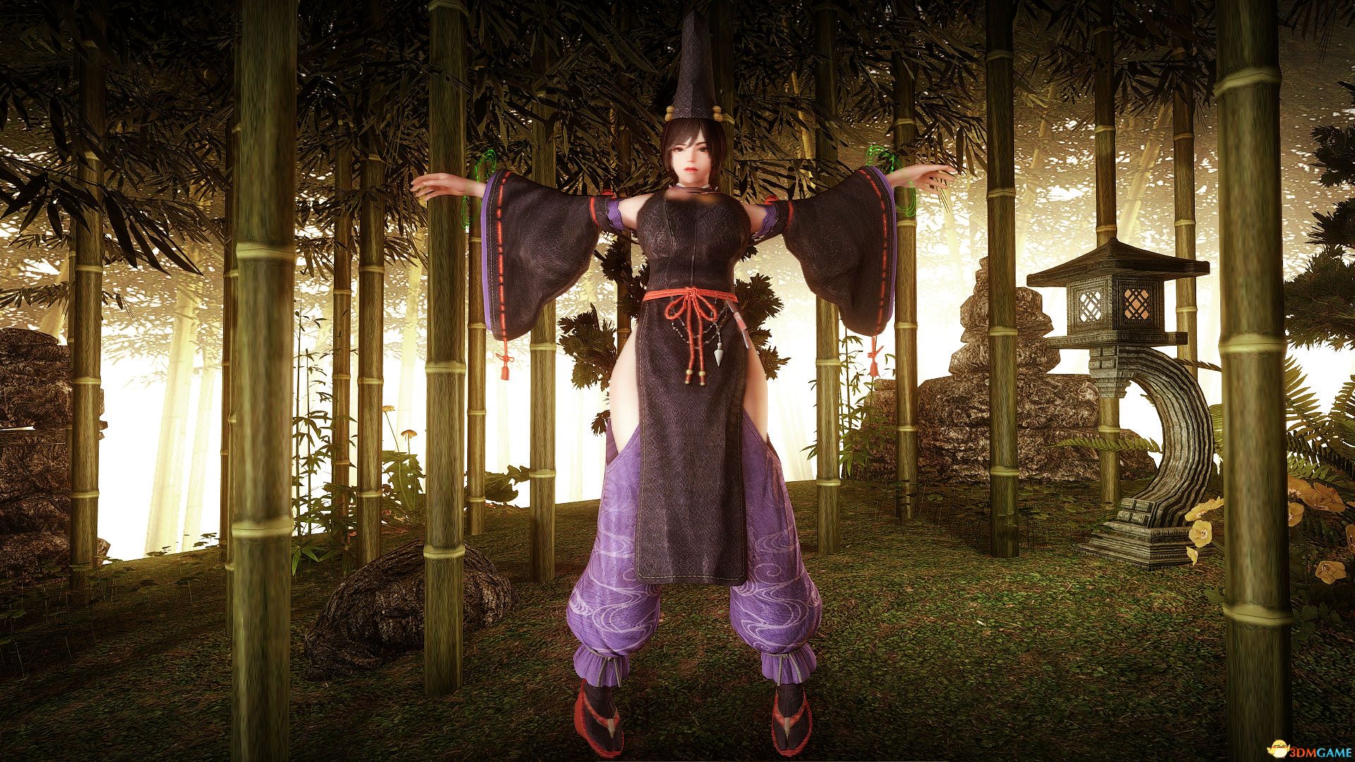 1、让你的女随从穿上仁王阴阳师套装,适应 CBBE 3BA 身形,衣服附带物理特性。