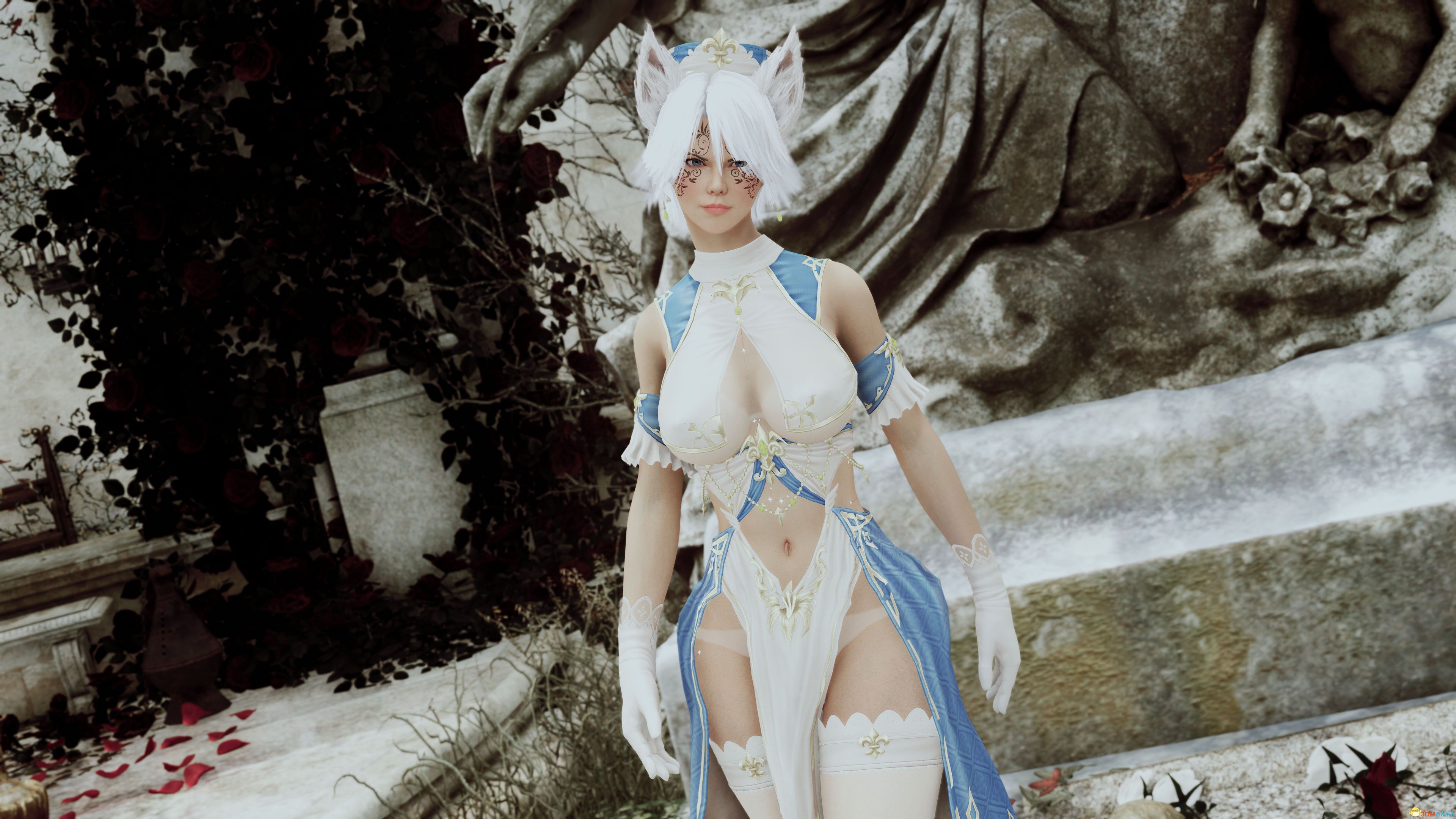 1、让你的女随从穿上维纳斯霍莉转世套装,适应 CBBE 3BA 身形,衣服附带物理特性。