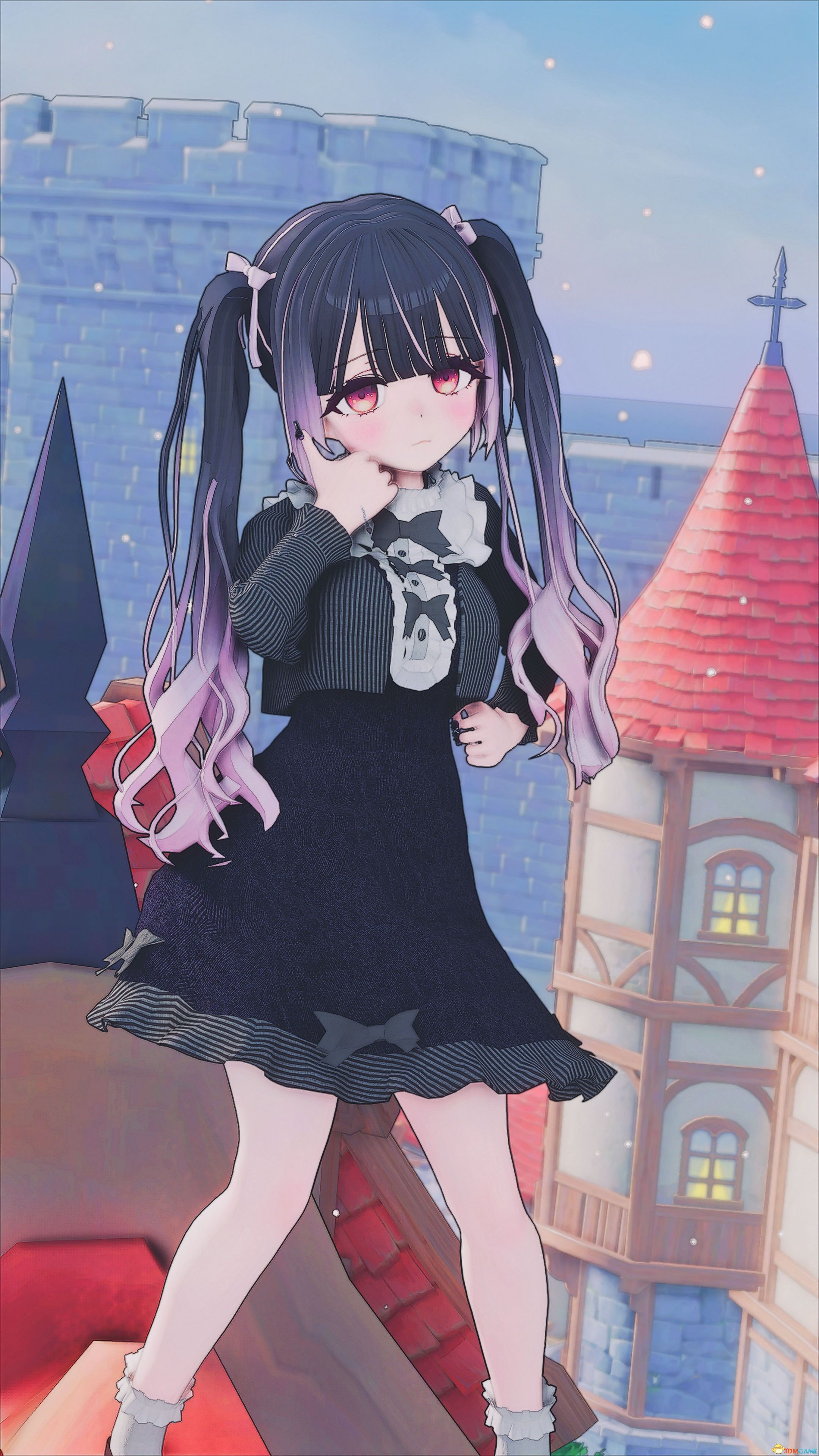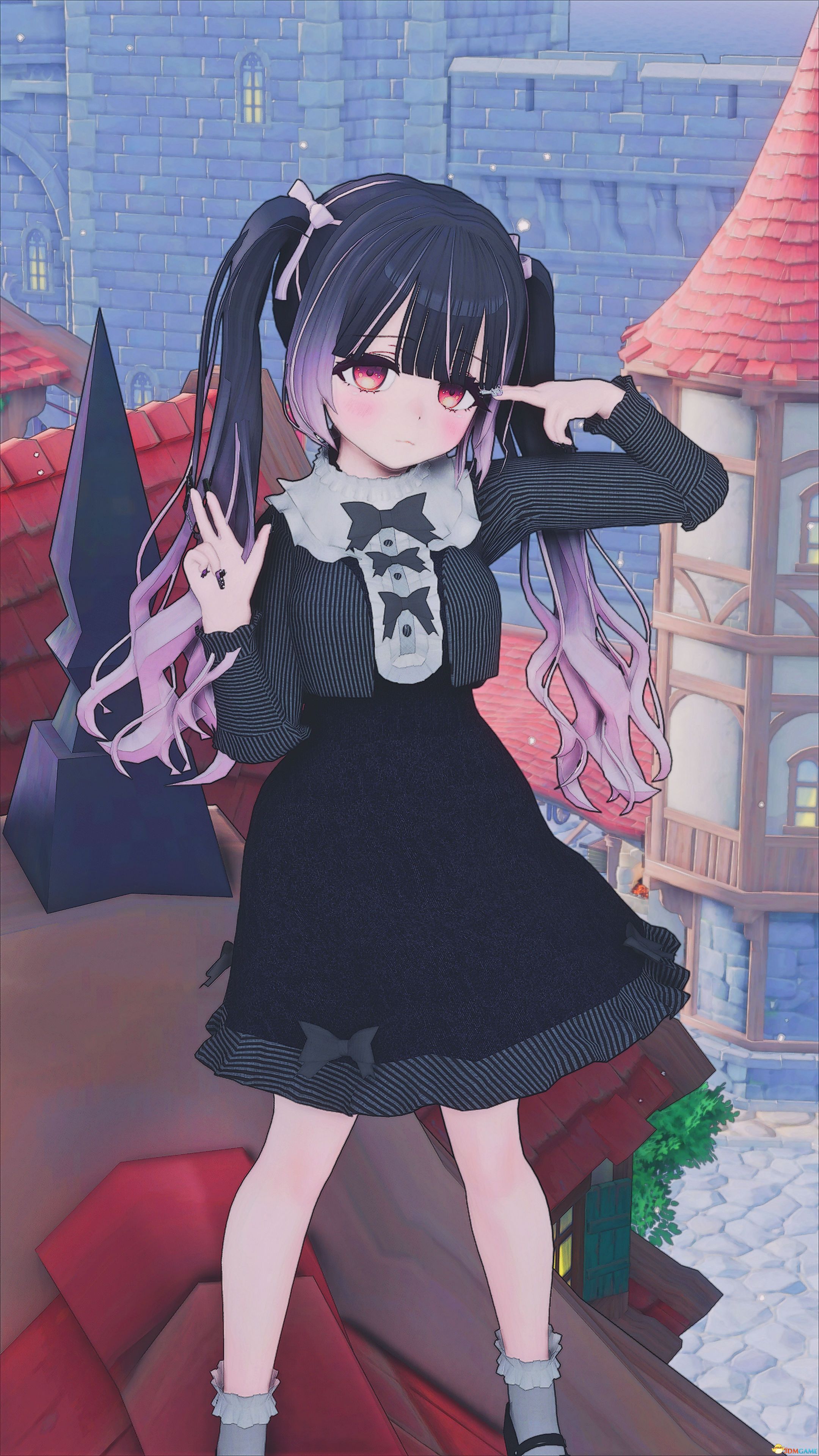 1、让你的女随从穿上条纹洛丽塔套装,适应 CBBE 3BA 身形,衣服附带物理特性。