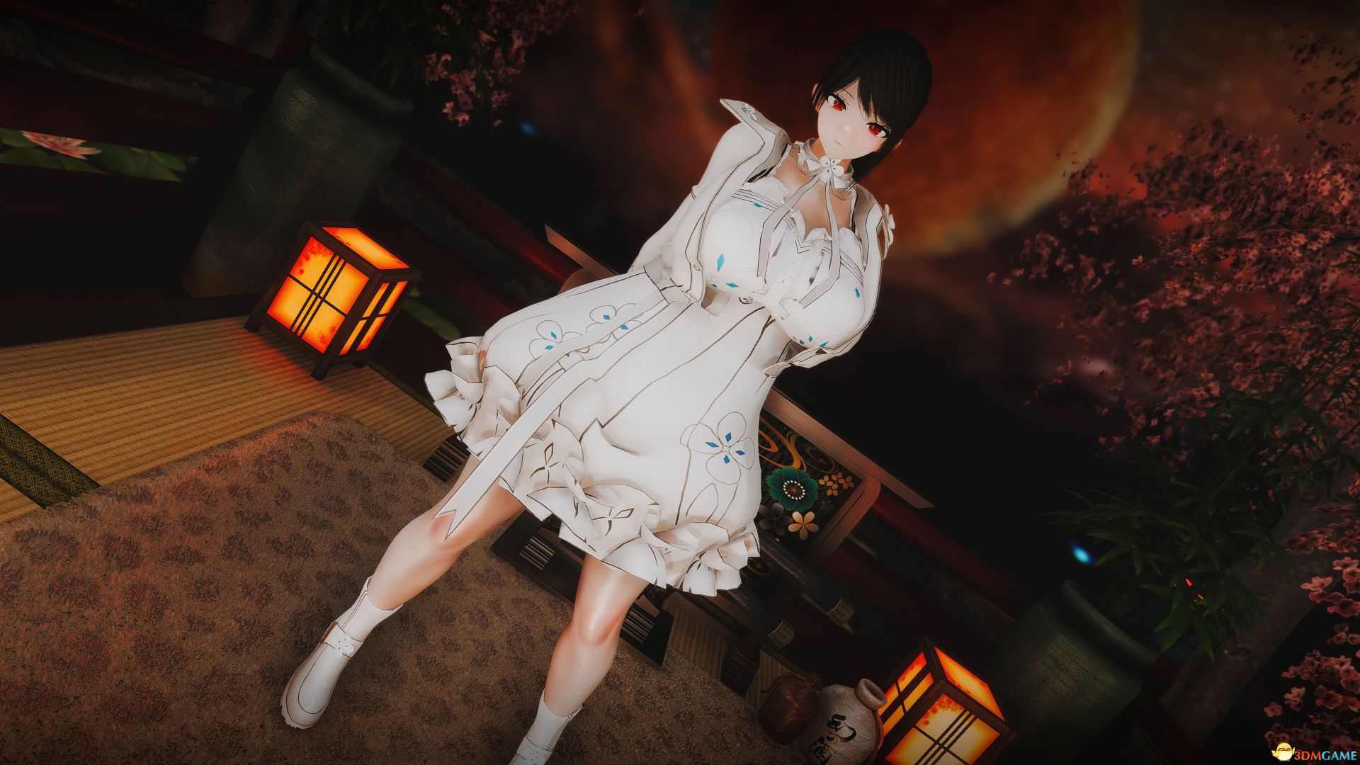 1、让你的女随从穿上晴空花开套装,适应 CBBE 3BA 身形,衣服附带物理特性。
