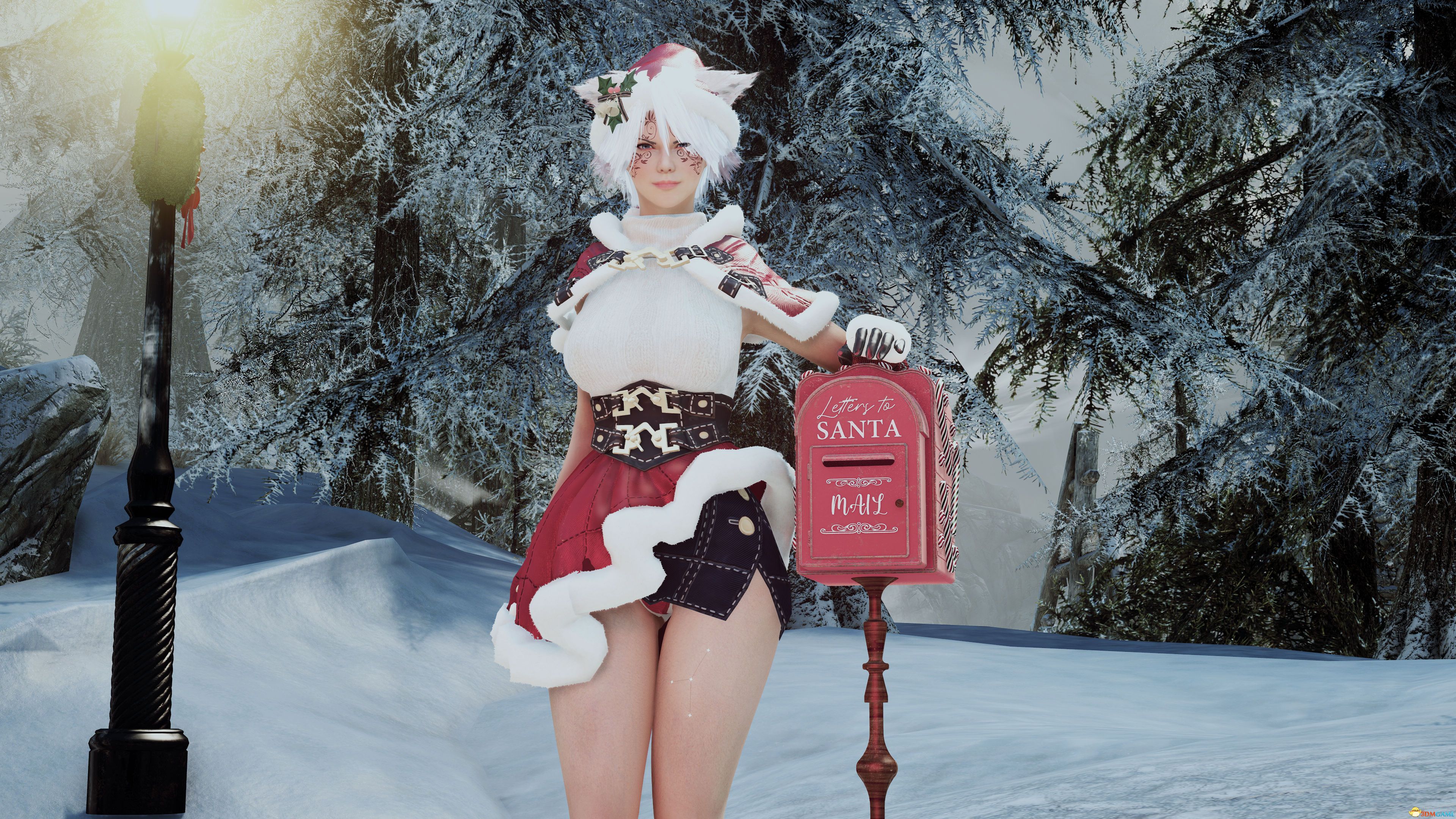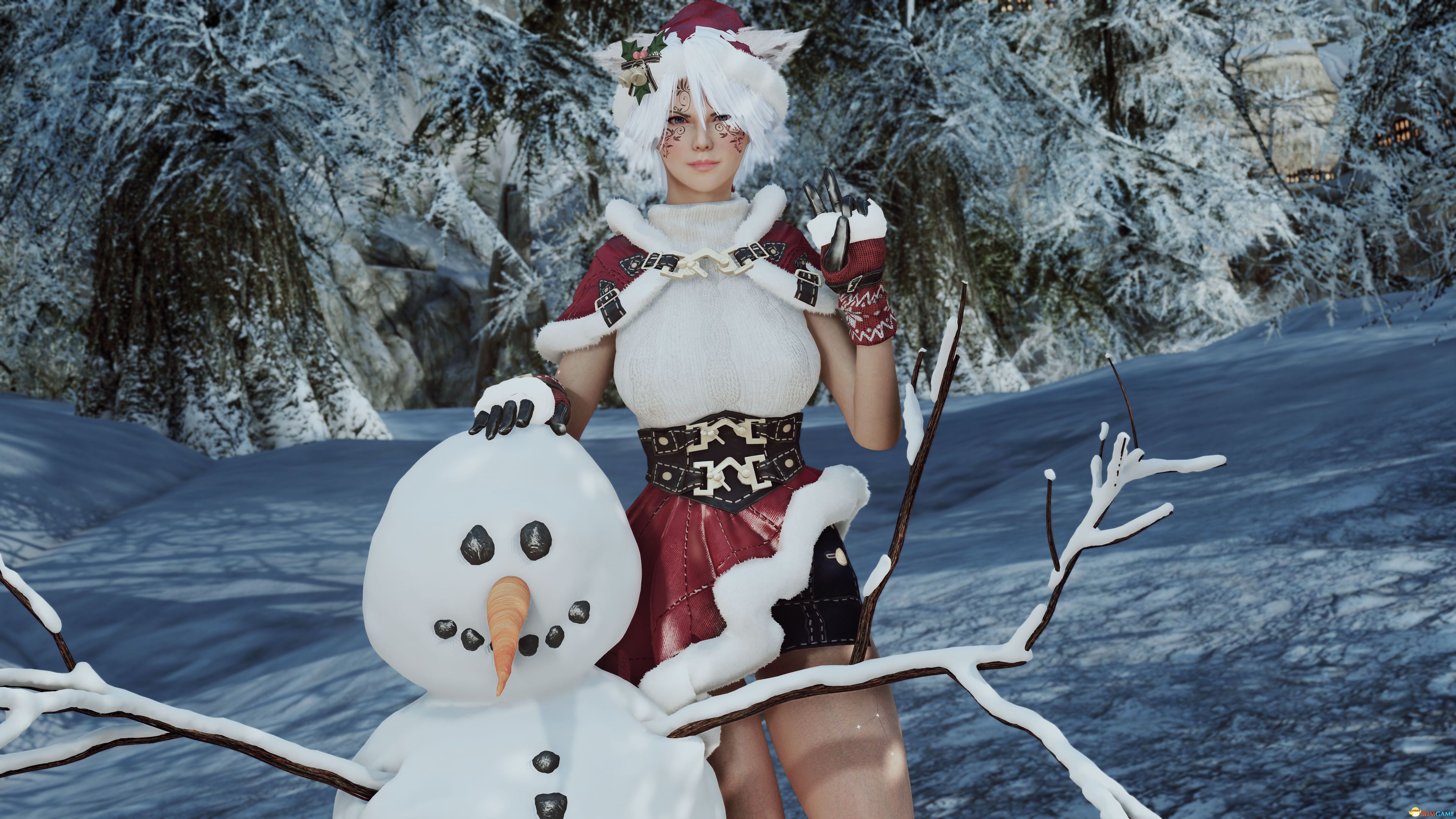1、让你的女随从穿上圣诞炎妖精套装,适应 CBBE 3BA 身形,衣服附带物理特性。