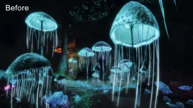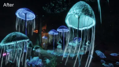 1、添加了许多细微的小调整,增强了原版世界。其中之一是在 Blackreach 和 Dawnguard 中的 Darkfall Passage 中发现的巨型蘑菇被换掉以添加额外的颜色。