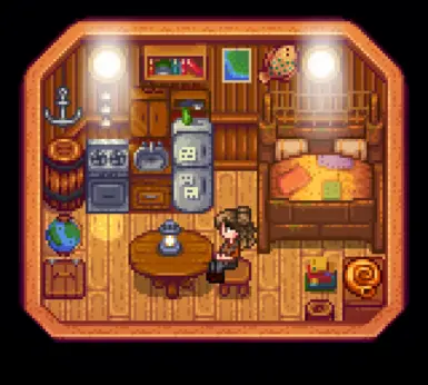 《星露谷物语》威利阁楼MOD,这个mod在鱼店增加一个阁楼,作为威利的小家。在正常开放时间,当与威利建立更亲密的友谊时(就像其他所有私人房间一样)可以访问通过。