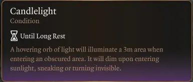 《博德之门3》自动调光MOD,改变Light、Daylight和Dancing Lights法术,具有一些生活质量功能,例如重新应用效果、在阳光下自动调光、关闭/打开它们以及对Dancing Lights的完全重新设计,在您需要时点亮,而不是在不需要时点亮。