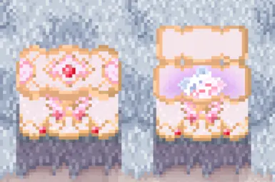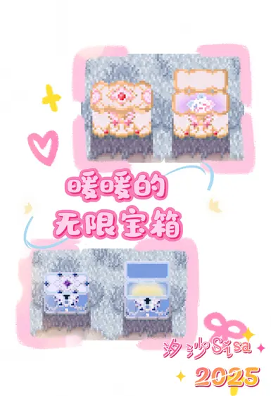 《星露谷物语》无限暖暖宝箱MOD,沉迷无限暖暖,开宝箱的过程中有了这个灵感,暖暖是最棒的女孩!我将运输箱美化成暖暖的宝箱,有两种款式可以选择,需要通过前置AT模组来实现美化。