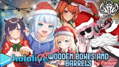 《生化危机4:重制版》Hololive神话组主题圣诞木桶盒子MOD,这个模组更改了木箱和桶的纹理,以展示Hololive生化组中的几位成员的外观。