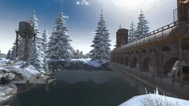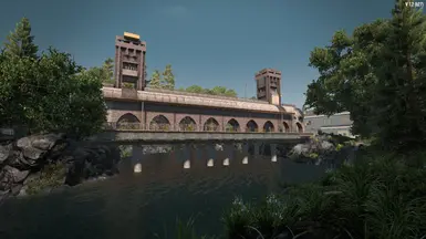 《七日杀》埃塞克斯桥MOD,这是一个直门图块,上面有一座横跨湖面的装饰桥。大量随机战利品(主要是湖底的垃圾)可以在你通过时掠夺。
