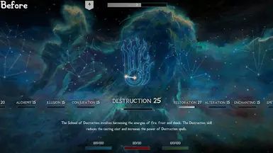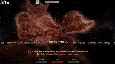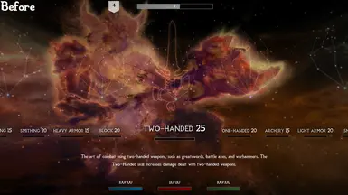 《上古卷轴5:天际重制版》空灵技能菜单大改MOD。将技能菜单界面彻底改版并重新纹理为更黑暗的奇幻风格。支持许多自定义技能。兼容除其他技能菜单纹理模组之外的所有内容。