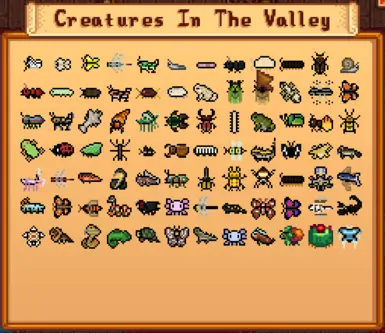 《星露谷物语》山谷中的自然MOD,这个模组添加了一个动物穿越风格的动物捕捉系统,有 80 多种可收集的动物在山谷中生成!包括一个昆虫馆,供您捐赠找到的所有动物以获得独特奖励,以及将生物作为宠物饲养的玻璃容器!