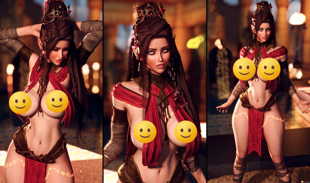 1、让你的女随从穿上性感的流放者柯南性感女祭司套装,适应 CBBE 3BA 身形,衣服附带物理特性。