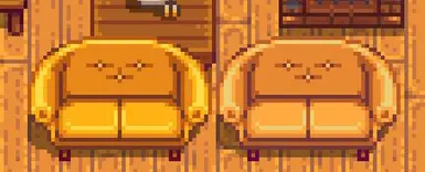 《星露谷物语》低饱和度沙发和扶手椅MOD,使用 Alternative Textures,您现在可以将黄色、蓝色和绿色的扶手椅和沙发更改为 *略微* 不饱和的版本。请注意,这些只是非常轻微的重新着色。它应该几乎不引人注意,但对眼睛来说仍然更友好。