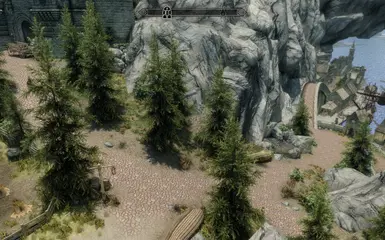 《上古卷轴5:天际重制版》码头和外部补丁MOD。这是一个简单的mod,删除了所有道路碎片并尽可能多地调整了地形,然后用Northern Roads纹理绘制了这些区域。固定接缝等。地形变化很大,所以我不得不稍微编辑一下导航网格,守卫似乎巡逻得很好,NPC像往常一样做他们的事。