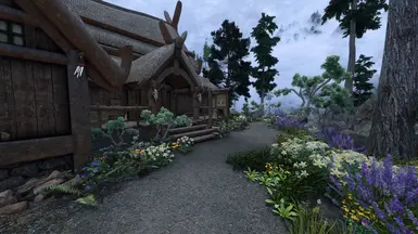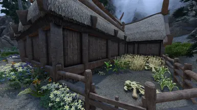 《上古卷轴5:天际重制版》翠绿的老赫罗丹MOD,我沿着大部分路径都添加了植物群,并在有意义的地方添加了蘑菇,就像我对 Riverwood 所做的那样。但这次我在旅馆后面添加了一个农场。