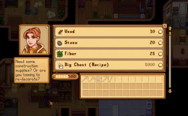 《星露谷物语》出售纤维MOD,一个简单的mod,将 Fiber 添加到 Robin 在 Carpenter's Shop 出售的材料列表中。您可以在模组的 content.json 文件中根据自己的喜好调整配置,包括售价、解锁年份和每天的纤维库存数量。