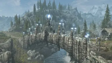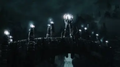 《上古卷轴5:天际重制版》神奇的龙桥灯MOD。这是一个简单的mod,这个模组为龙桥增添了一点额外的角色,在每个柱子和路径上方都有神奇的灯光效果。