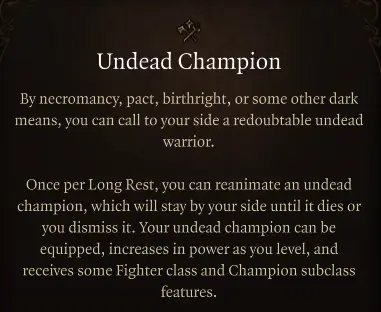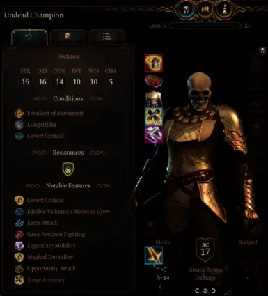 《博德之门3》亡灵冠军MOD,一个简单的mod,今天就装备你的亡灵吧!多亏了多元宇宙最笨拙的死灵法师 Valkrana 的开拓,您可以召唤一位值得怀疑的不死战士,它可以装备,拥有自己的库存,随着您的等级而增加力量,并获得一些战士职业和冠军子职业功能。