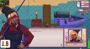《星露谷物语》鱼贩MOD,一个简单的mod,她是一位在姜岛安家的鱼贩。她就位于码头上,她的船一年四季都停在那里。欢迎你随时过来,她的警察没有宵禁或锁着的门。起初可能有点粗糙,但你很快就会意识到她并不像她第一次出现时那样坚忍和严肃。这里也有相当多的鱼双关语,所以我希望你能带来幽默感。