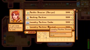 《星露谷物语》洗衣机MOD,一个简单的mod,洗衣机是可以放置在室内或室外的家具物品,每天会随机生产一件衣服或布料。这包括通常在特定情况之外无法获得的特殊衬衫或裤子。