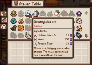 《星露谷物语》小玩意儿MOD,一个简单的mod,是一个以制作为重点的物品扩展包,它添加了许多玩具、陶瓷和其他小玩意儿来装饰空间、从中获利或赠送。在收到农民的远房亲戚寄来的信后,您将能够纺线、用觅食的野花染色、寻找和雕刻稀有瓷器,并利用精灵炼金术的力量来制作(当前数量)74 个小玩意!