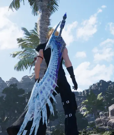 《最终幻想7:重生》冰咒龙大剑MOD,这个模组将《怪物猎人世界:冰原》中的冰咒龙大剑加入到你的游戏中,替换了克劳德的大剑外观。